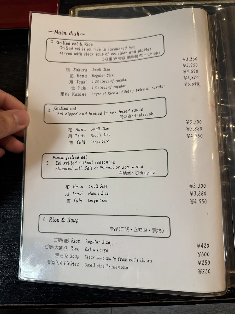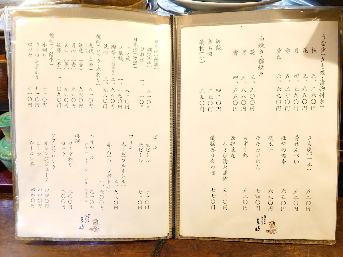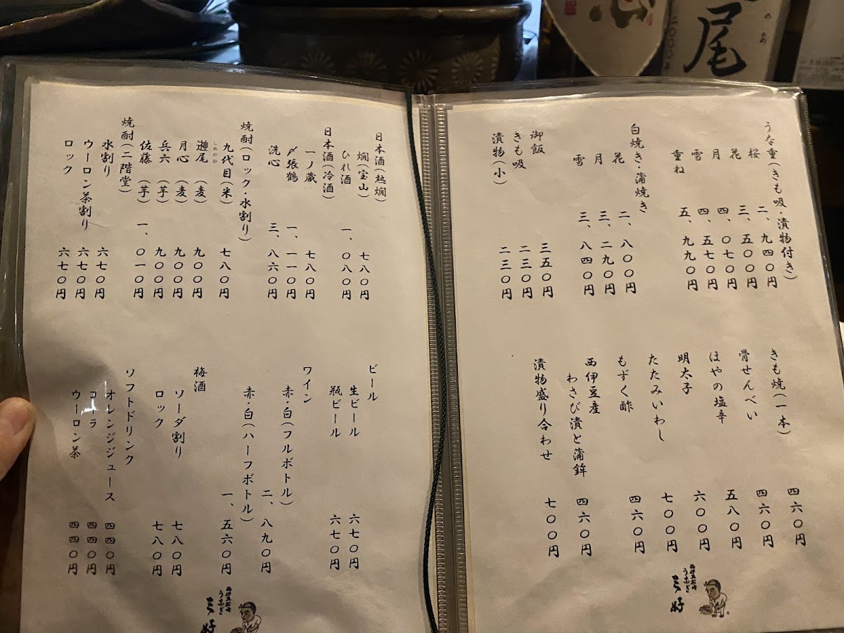 The menu at Ningyōchō Unagi Miyoshi offers a range of delicacies that highlight the restaurant's focus on eel and fresh ingredients. One of the standout dishes is the Eel Grilled Without Seasoning, which showcases the pure, smoky flavor of the eel, grilled to perfection without any heavy seasonings. For those who enjoy the richness of eel's internal flavors, the きも焼き (grilled eel liver) is a must-try, complemented by the Clear Soup Made from Eel's Livers, which adds a subtle depth to the meal.